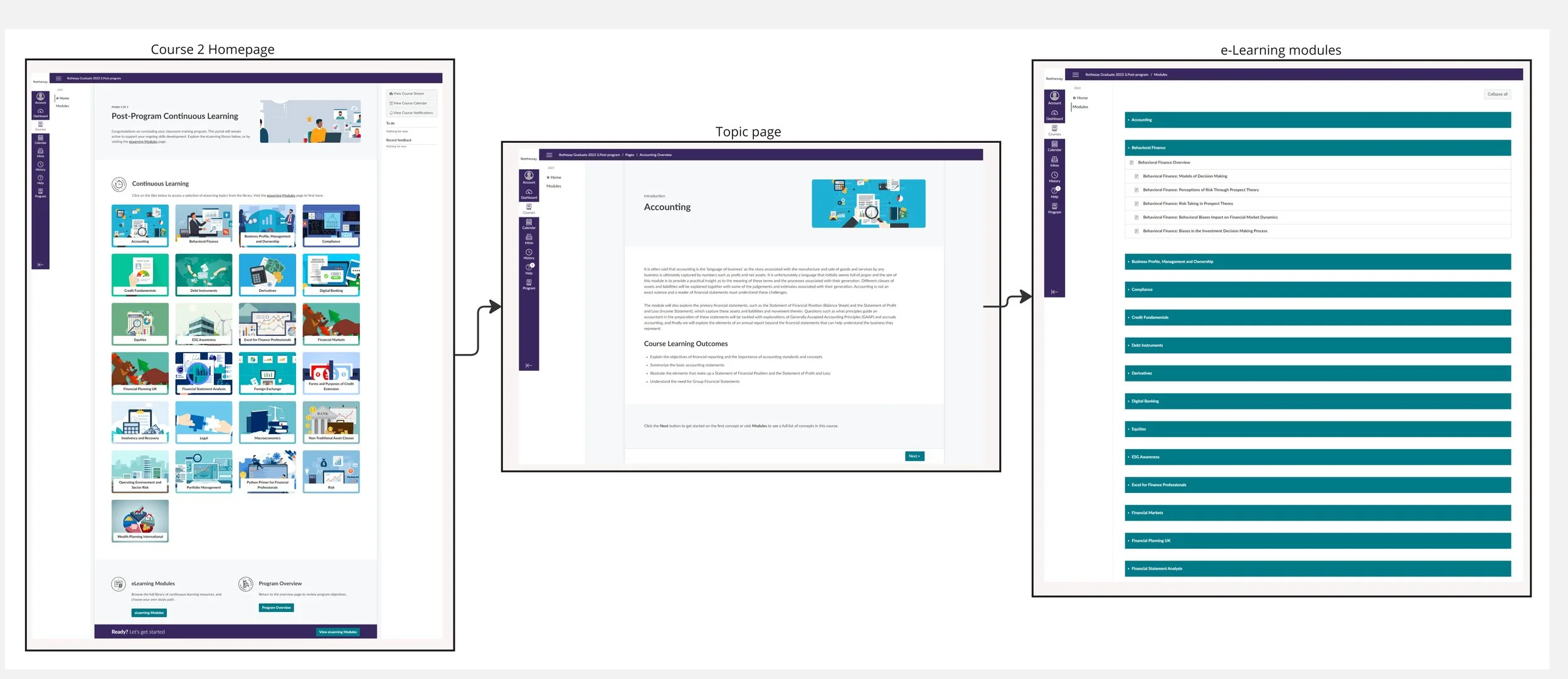 We developed a scalable, user-friendly learning program template with interactive elements, adaptive content, and real-time progress tracking. Working with UX and design teams, we created an intuitive interface focused on accessibility and engagement. After two rounds of usability testing, we made key improvements based on user feedback, resulting in an A-rated course. The final program, launched on Canvas, was easily scalable and adopted by companies like HSBC, Citi, and Barclays, reducing delivery time while maintaining high-quality learning.